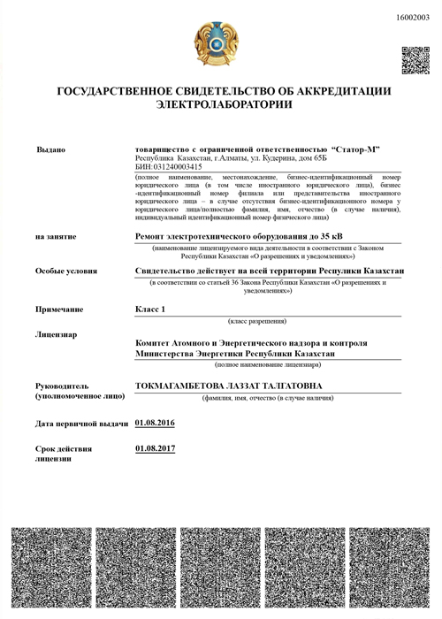 Компания «СТАТОР-М» получила Государственное свидетельство об аккредитации электролаборатории